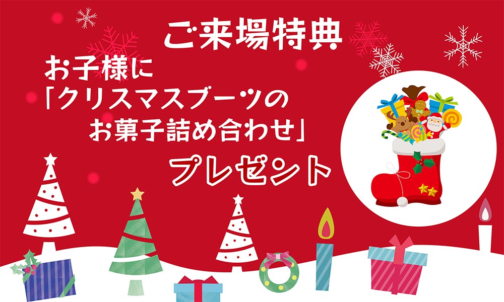 ご来場いただいた方には「クリスマスお菓子セット」をプレゼント!(※小学生以下のお子様に限ります)