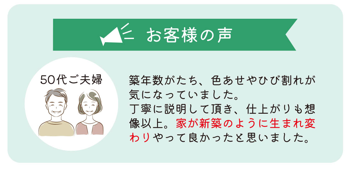 雨や紫外線から住まいを守り、家族の暮らしと大切な財産を守る予防工事」です。