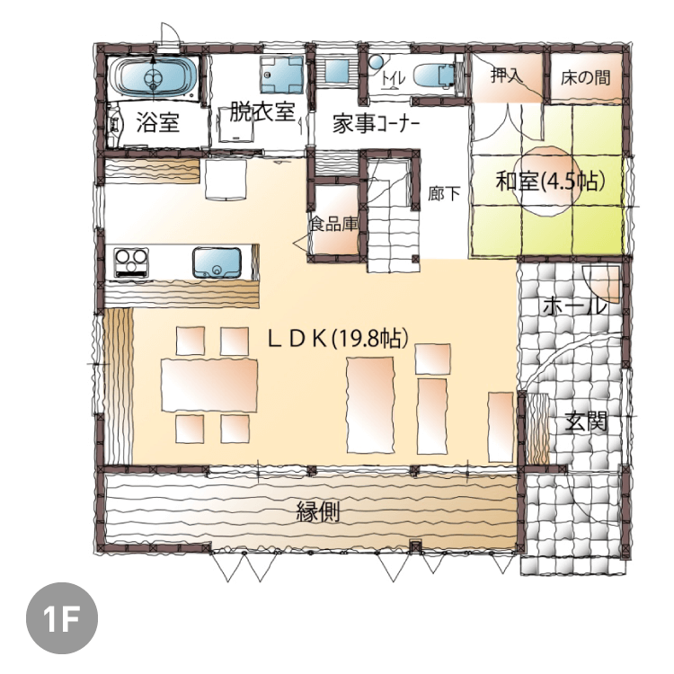 長く健康に住まうためには、使用する素材も重要。天然素材にこだわった構造材と内装材はシックハウスを防ぎ、家族の健康を守ります。
