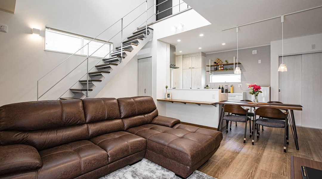 シンプルが個性、プライバシー性が高く自分たちの暮らしを大切にできる外観デザイン。テクノストラクチャーだから可能な開放的な大空間。『お気に入り』のインテリアでお部屋を演出。